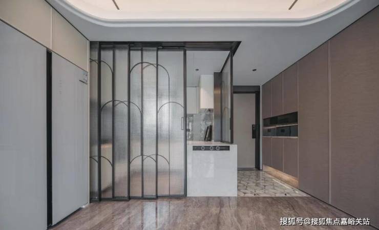 项目的厨房采用金属框+艺术玻璃移门,推拉丝滑颜值颇高!