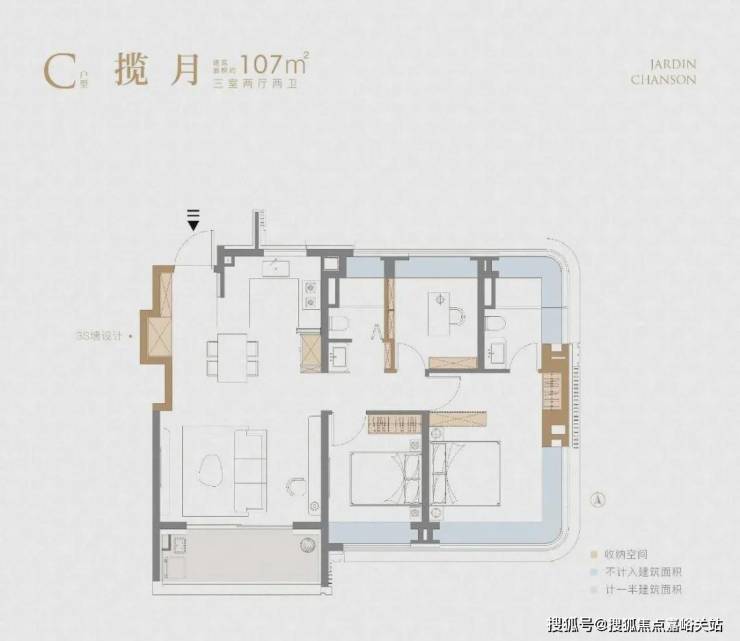 不夸张的讲,这个 建面约107㎡刷新了我对百平三房的新认知,据悉该户型或将申请专利,我认为实至名归!
