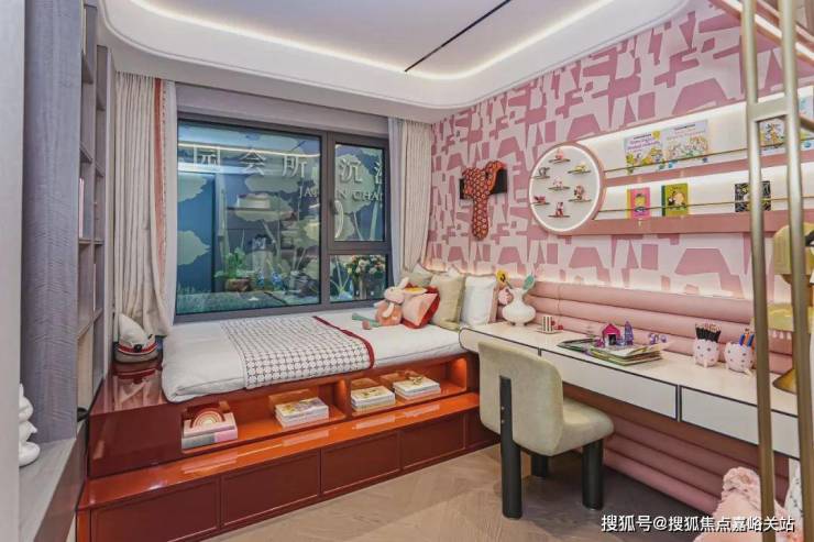北向卧室的S墙设计,则可以做成一整面的收纳架,书籍或玩具都有了足够的盛放空间。