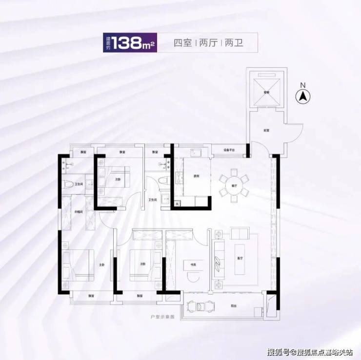 方正格局:全明阔绰四室、约13.4M南向四开间,打造尊荣生活格局