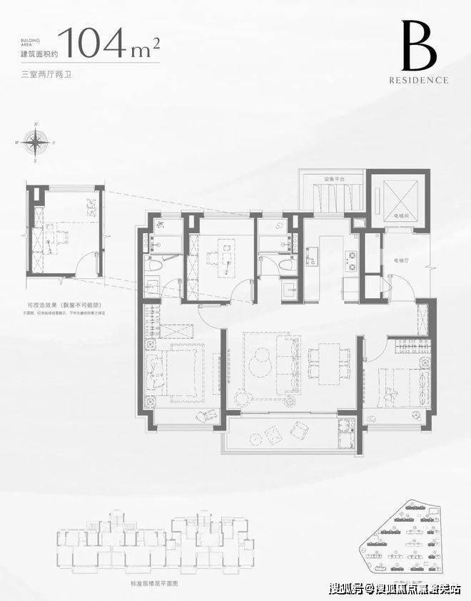 建筑面积约104㎡3房更懂生活的气派大横厅