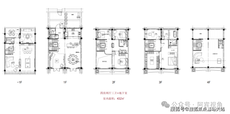 双拼户型平面布局(建筑面积180㎡,使用面积432㎡)