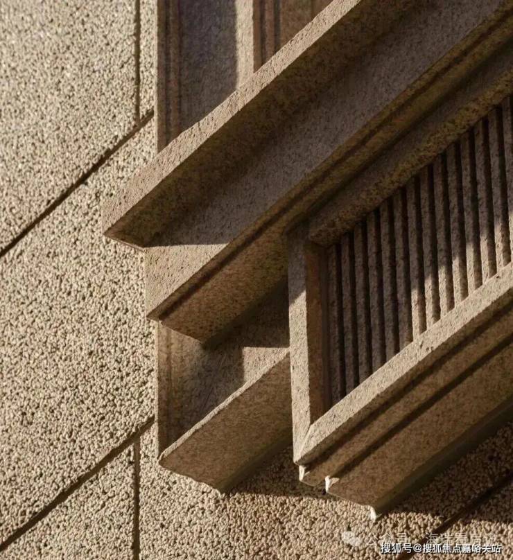 水刷石墙面由匠人甄选石子,匹配颗粒大小,经七道工序及“洗三磨三”处理,以确保颗粒均匀。这种工艺不仅保持了老墙的味道,还增加了防酸防潮功能,适应未来气候变化。