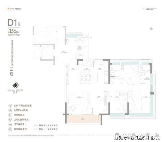 电梯厅全明通透+类一梯一户设计,满足大户型业主对于入户私密性的生活需求。此外还增加两处优秀设计:多飘窗和惊艳的MAX收纳尺度。