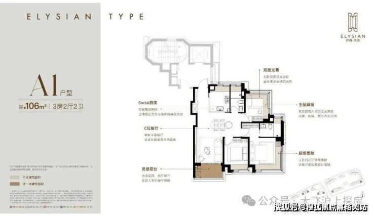 南北两个房间都做到270°飘窗,采光和景观面极其优秀。