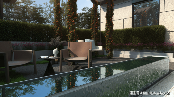 庭前绿地的面积有约40-60㎡,不管侍弄花草、晒晒太阳,抑或叠山理石,都足够了。