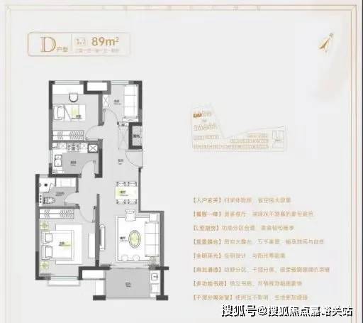 户型结构:主力户型(面积、居室数量)、布局设计(南北通透 / 动静分区)、得房率、赠送面积、飘窗 / 阳台配置