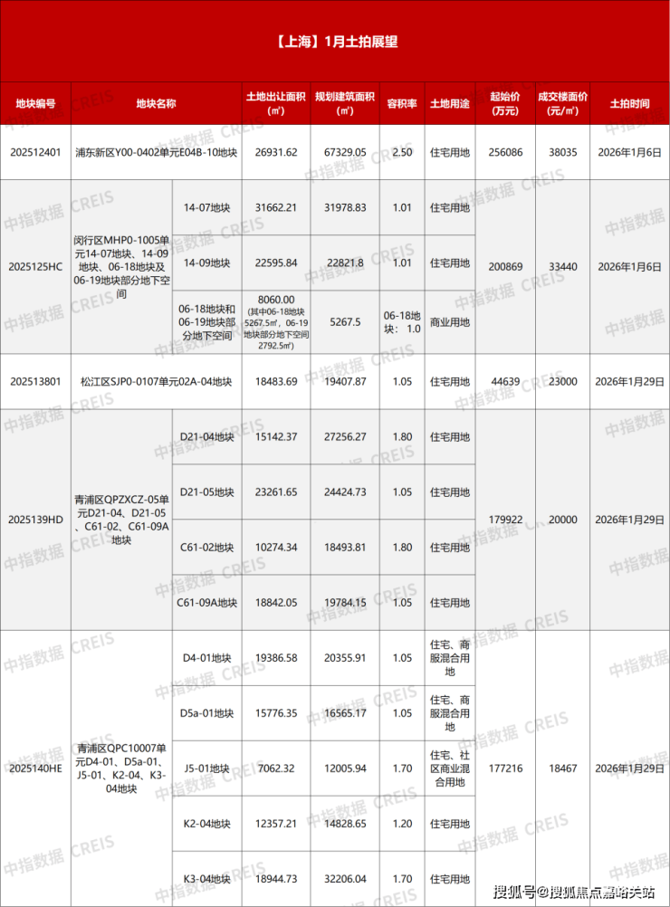 1月份,上海将迎来2场土拍,共计5宗涉宅用地,总起始价85.87亿元。其中2025年十批次的两宗涉宅用地将于1月6日出让,2025年十一批次三宗涉宅用地将于1月29日出让,地块详情见下表。