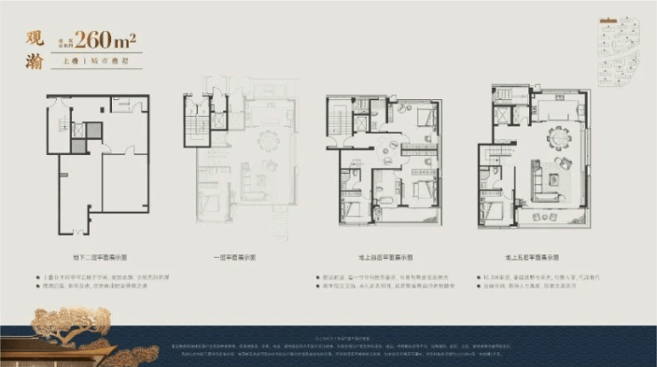叠加:建面约170-260㎡藏品叠墅,创新思维重塑高端人居范式,动静分区、独立电梯归家、上下同享地库等,突破常规设计。