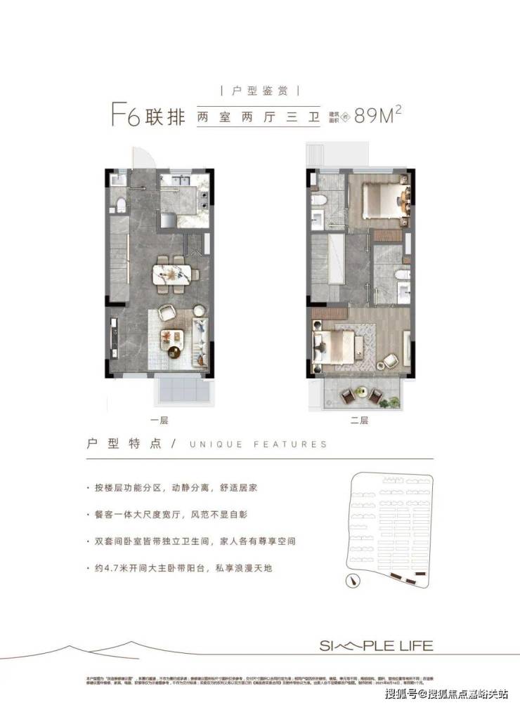 项目合计47幢楼,其中洋房12幢554套,联排33幢301套,项目整体分两批次推出,总计855套。采用人车分流,即保证社区整体设计的美观,又保证业主的安全性,车位有920个,做到1:1的比例。