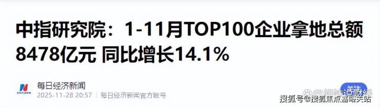 2025年 前11个月TOP100房企拿地总额同比增长14.1%,民营房企也罕见活跃,有人甚至三次刷新地价纪录。
