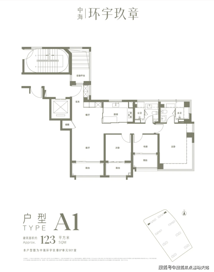 户型设计:项目主打建面约 123-176㎡的 3-4 房户型,全系大面宽,实得率超 90%。以 123㎡户型为例,南向面宽达到 13.4 米,设计了三阳台,还有全明玄关、储藏间等亮点;144㎡和 176㎡的大户型则升级为类一梯一户设计。