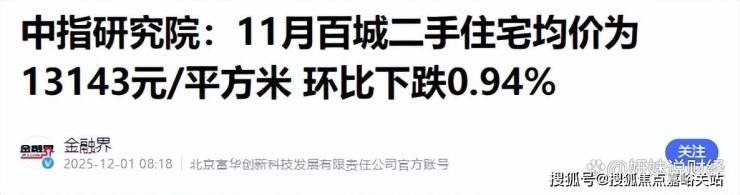 根据最新披露的数据, 2025年11月全国上百个城市二手住宅均价为13143元/㎡,环比下跌0.94%,而这个跌幅,较上月还扩大了0.1个百分点。