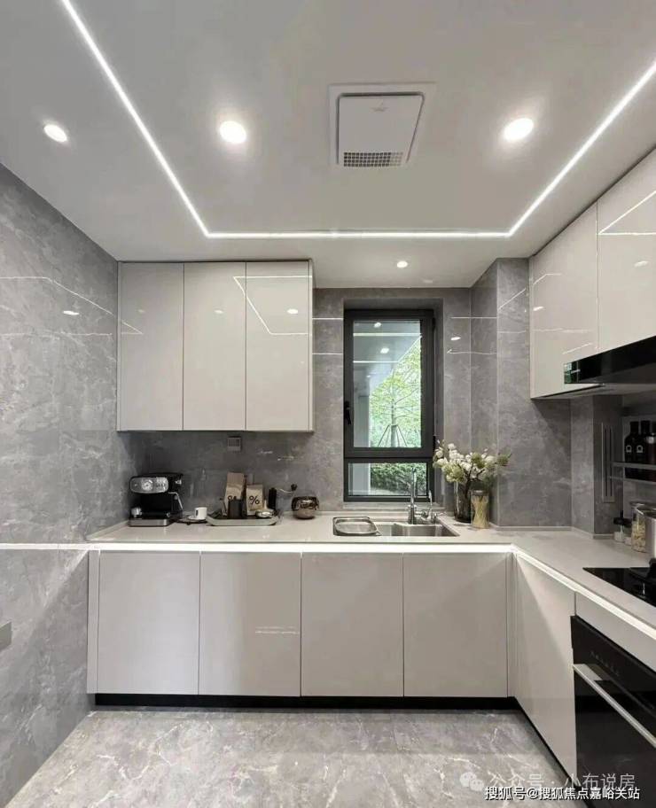 橱柜收纳系统:特别预置洗碗机点位、柜内下拉篮式设计、不锈钢挡油板、柜下操作灯、烹饪全流程功能动线一体化设计;