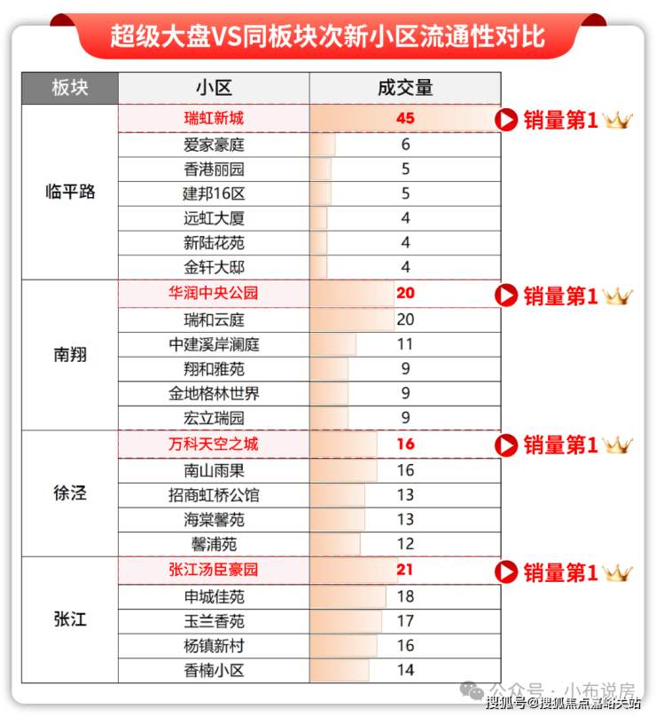 从过往表现来看,但凡能定鼎区域大盘的项目,比如瑞虹新城、汤臣豪园、华润中央公园、万科天空之城,首先销量即流通性区域第一!