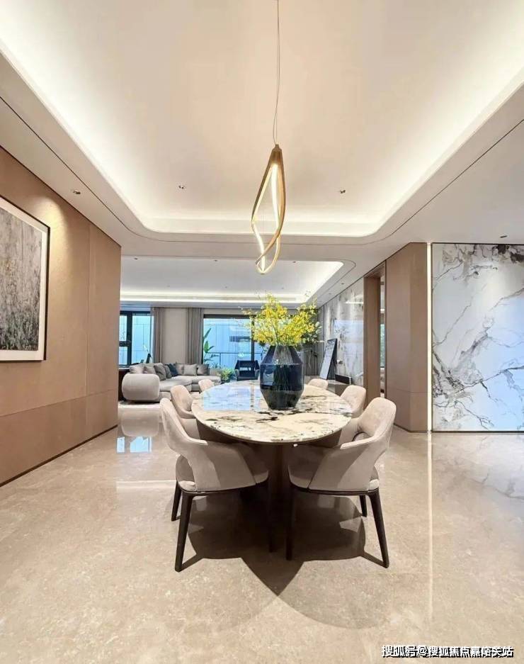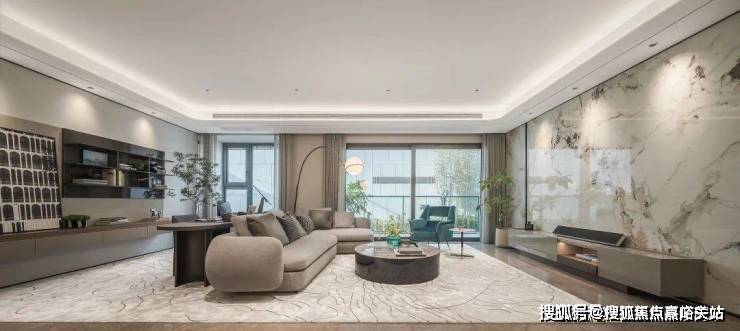 室内设计,秉承摩登东方的理念,设计以人、生活为中心,从空间本体和情感层面都回归生活,270度环幕采光,开放式会客厅设计,兼具尺度感与功能性。