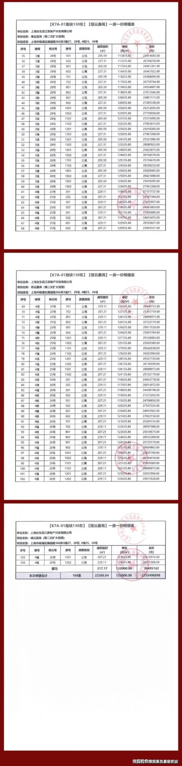 缦云上海三期一房一价表: