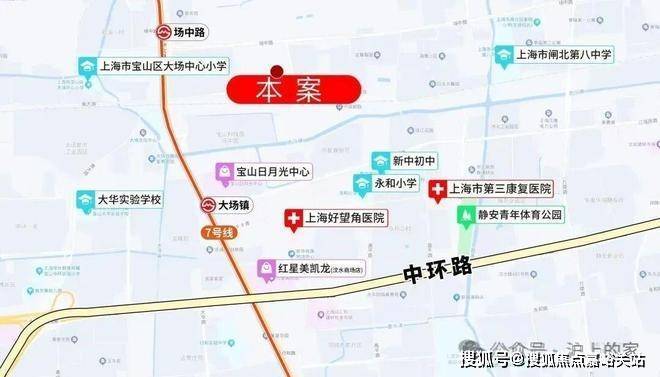 项目位于宝山区大场板块,地处界华路和场中路交界处,位置十分优越,距离7号线场中路地铁站步行最多也就500米左右,然后沿着7号线,两站入中环,三站进市区,六站就进入核心内环了