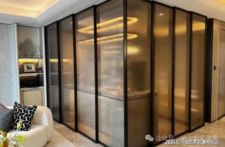 客厅背景墙的“烟雨江南”天然大理石,不同于传统平面背景墙,通过弧度及立体的造型处理,并镶嵌不锈钢材质!对于金茂而言,比奢石昂贵的,是让奢石真正与空间气场融为一体!