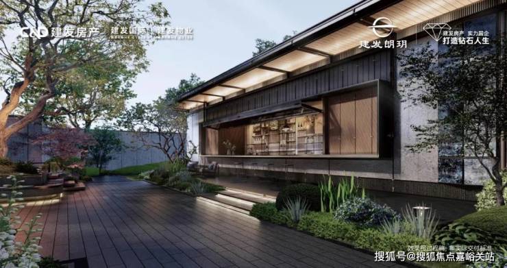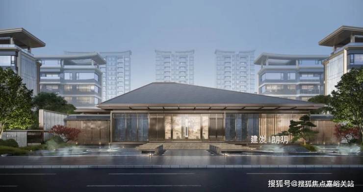 遵循建发中式建筑元素中“儒门”的设计,打造威仪门庭;设计叠水景观及青云桥,为业主营造“群贤毕至,平步青云 ”的归家尊崇。