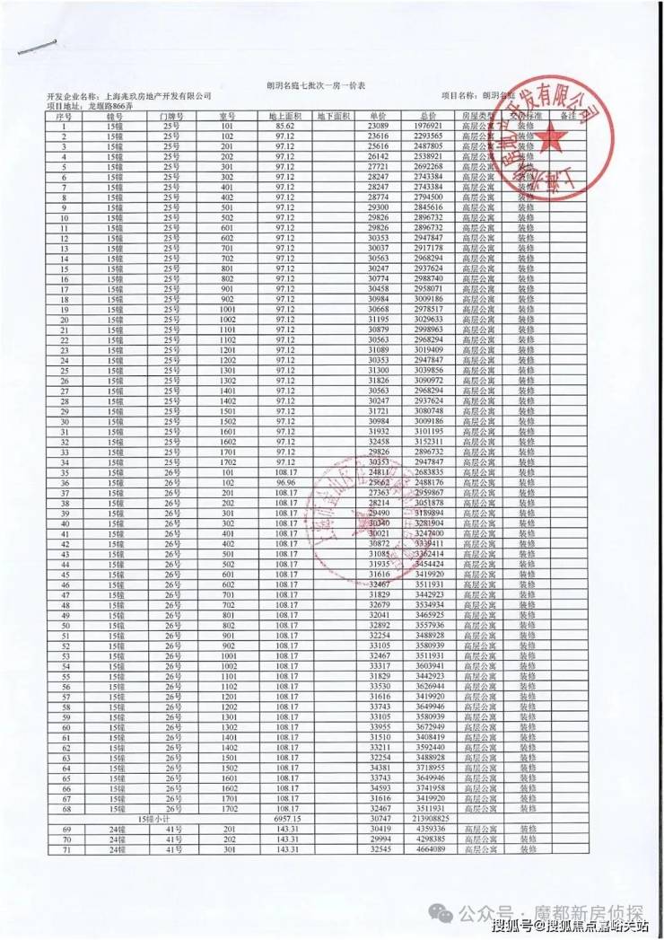 建发·朗玥一房一价表
