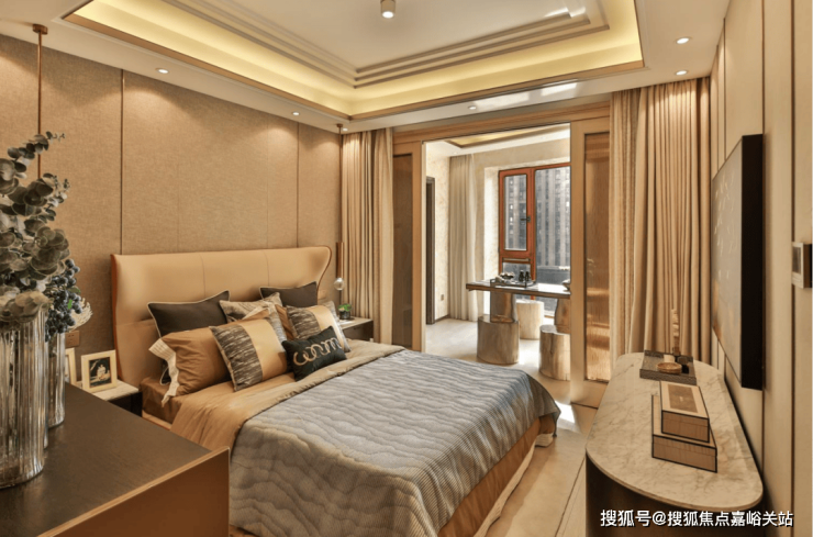 南向老人房为全功能套房设计,尤其是南向阔绰阳台,试想一下父母起床一步就能跨到阳台,莳花弄草、悠然烹茶陶冶情操。
