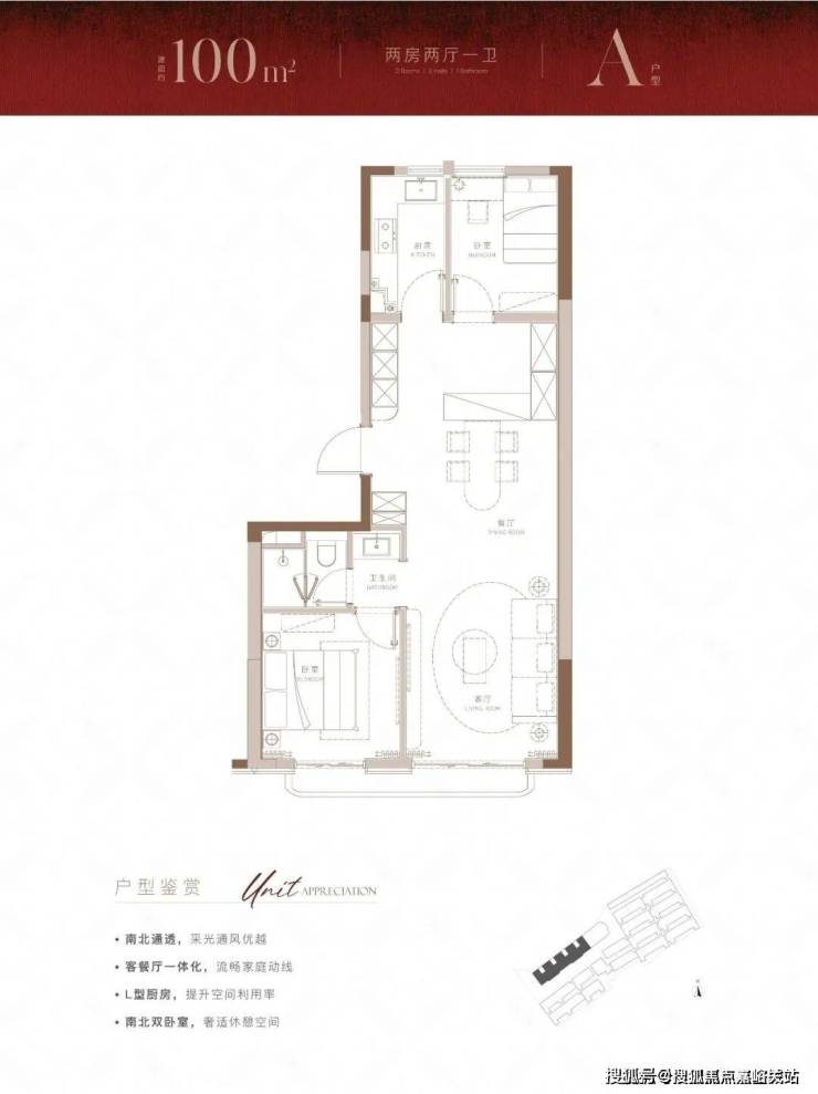 建面约100m²大2房户型,带来的不仅是方正的布局,也为购房者带来了体验感超绝的视野和采光。信达信安里售楼处电话:400-8854-706