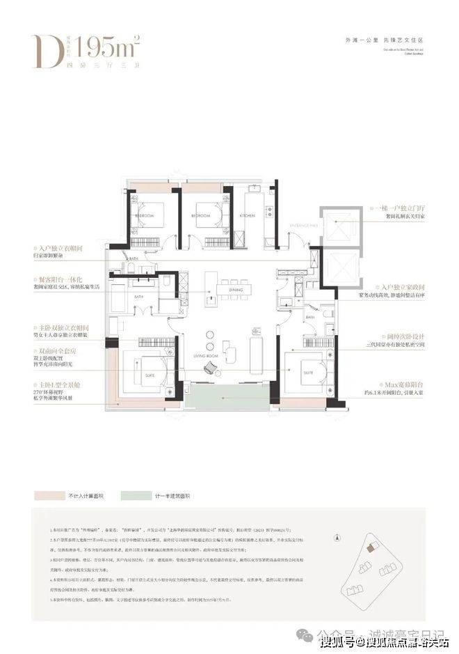 建面约195㎡4房 总价约2700-3300万