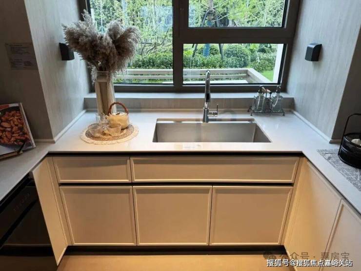 入户设置800库空间,它和传统玄关柜的区别在于:从“平面收纳”升级为“立体仓库”,储物功能更强大!约5米面宽横厅,多出来一个灵动空间,可根据个人需求定制为开放式书房、茶室等;岩板+金属饰面电视背景墙同样为交付标准;LDK一体化,餐厅区域可轻松放下6人位餐桌,并预留餐边柜位置;U型厨房,配置方太四件套(油烟机、灶具、洗碗机、蒸烤一体机)、科勒水槽及龙头等,基本所见即所得;同时厨房也附赠飘窗,将飘窗台面与橱柜一体化设计,做为了水槽区域,极大的提高了厨房空间的实用面积!边套户型主卧为270°转角飘窗,并预留两个衣柜空间;北卧为封闭阳台,实际交付时阳台会改造到位,地暖通铺,地板墙纸通铺,吊顶做好,可参考样间效果。综合来看,该户型还是非常不错的,满足改善需求的同时,各空间储物空间充足,完美解决了这一类客群的收纳痛点,作为项目主力户型,关注度很高!