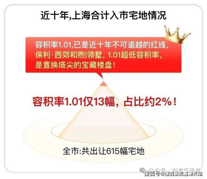 据上海土地市场统计,近十年共出让615副地块,容积率1.01的共13副地块,占比仅约2%;容积率低于1.01的,供应量为0!