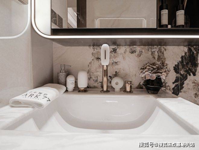 进门左手边,雪山银湖透光奢石作为置物台面,质感非凡。