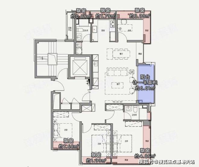项目百平三房,在计算阳台一半面积+飘窗赠送面积的情况下,实得率可以达到91%左右,完美覆盖了当下普通高层的得房率痛点。