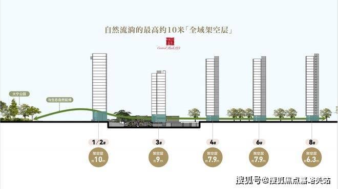 向内,项目更是以令人惊叹的魄力,打造了约6.3-10米超高层级全域架空设计。