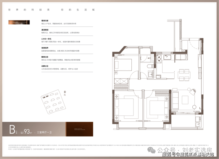 约93㎡、101㎡正三房户型均做到三开间朝南,采光与通风俱佳。以 93㎡户型为例:
