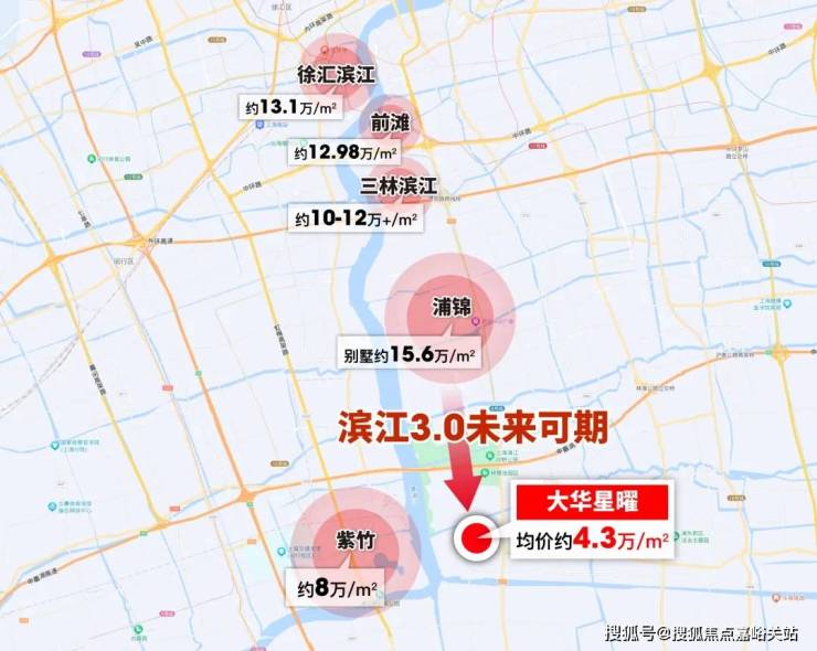 而同为闵行、同为三河交汇地区的浦江、目前联动价仅约4.3万/㎡的大华星曜就是千亿产业区大零号湾外溢的首选。