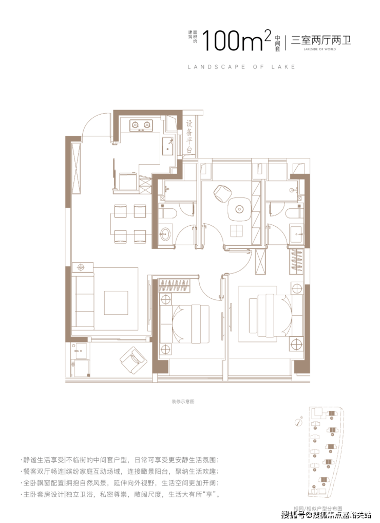 建面约100㎡3房2厅2卫,做到了 三开间朝南+主卧套房设计+动静分离+全卧室带飘窗,功能性和尺度感完美结合的3房户型。 🍀🍀映翠府售楼处电话:400-8894-986🍃🍃