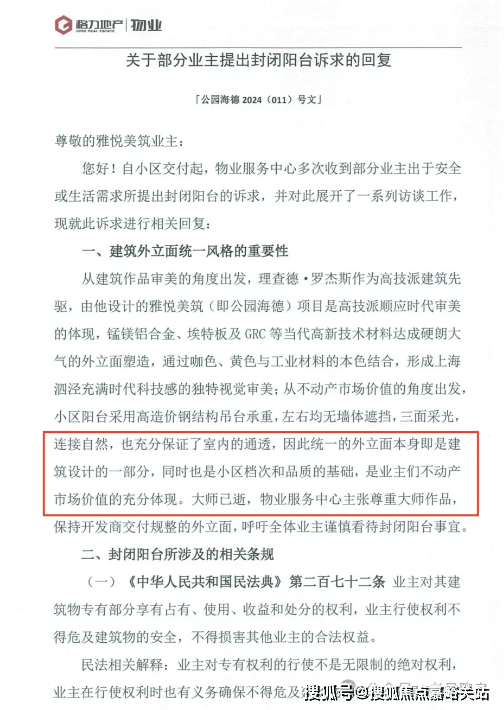 上海格力公园海德营销中心电话:400-8874-108 VIPLINE✔✔✔【官方发布】太夸张了!“格力·公园海德”的物业将“封阳台”的业主给告了!