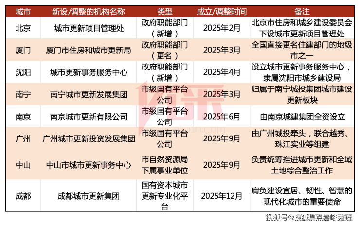 我国城镇化进程进入新阶段,城市建设已从“增量扩张”转向“存量提质”。国务院在《关于推动城市高质量发展的意见》中,更是明确将城市更新作为推动城市高质量发展的关键抓手。2025年,各地加速制度创新,成都、厦门、南京、广州等城市纷纷设立专职城市更新机构或组建国有平台公司,有的整合住建职能、加挂更新牌子,有的直接更名部门、强化统筹权威,标志着城市更新正从临时性工程迈向常态化治理。