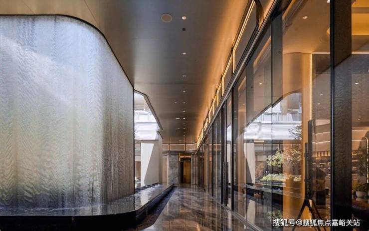 整体长约18米、进深约9.5米的下沉庭院——星池雅宴,将空间意境与社交属性的精准定义,引入“琉璃光院”的通透与灵性,将玻璃砖景墙与金属网水幕作为空间的核心元素,尽显海派雅奢风情。