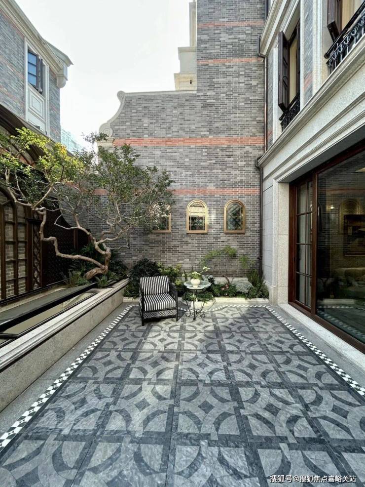 从小区正门走进来,寸土寸金的地段,做出了这样的三进院。地上铺的这些石板,都是原有百年建筑的材料。岁月把散落的材料与技艺,收拢成了这一座「回廊四合」的庭院。这些墙用的是「梅花丁」的砌法,勾缝是非常讲究的「元宝缝」,这都是专门邀请修复上海历史建筑的那些老师傅,才得以重现。