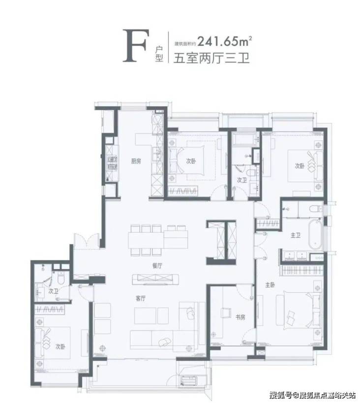建面约241㎡5房2厅3卫户型,原先保留的房源现在对外出售!五年前的价格!单价仅11万!一步到位改善级豪华住宅,四代同堂无压力,2500-2700万级精品巨献!