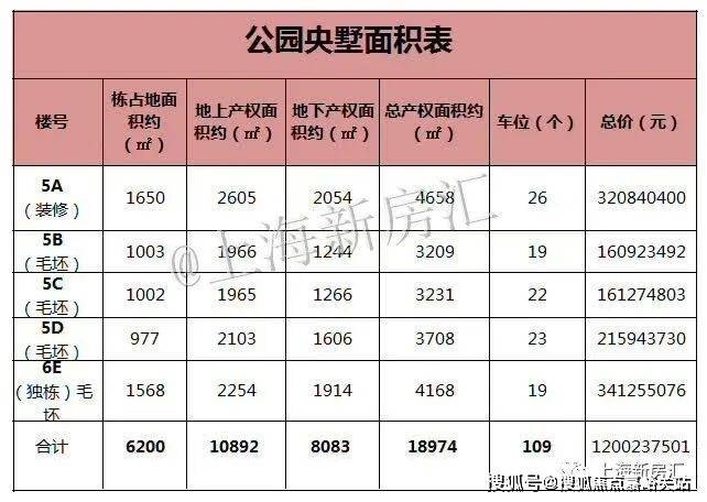 5号楼(独栋):地上4层2252平,地下2层1617平,花园约461平,总使用面积约4330平,报价3.4亿元'