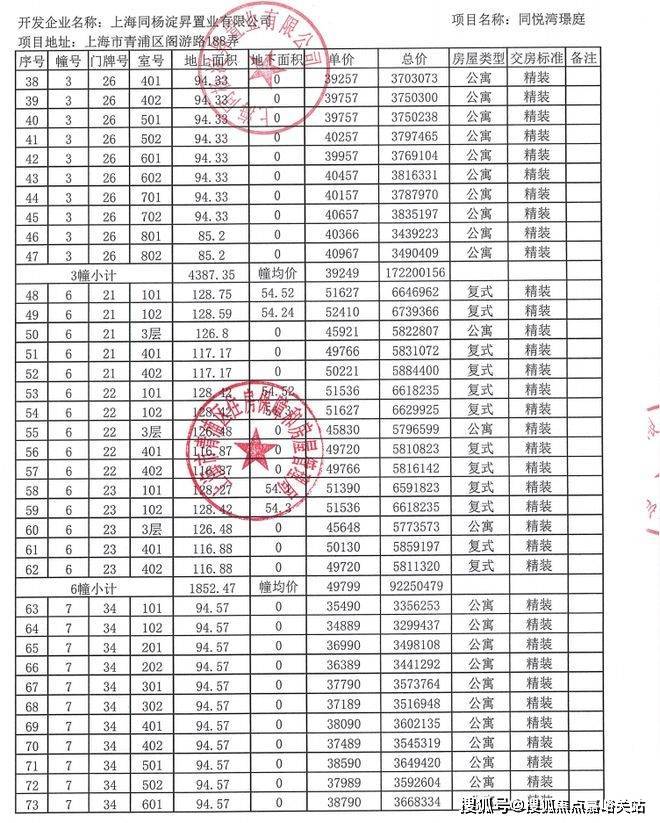 附全套一房一价表: