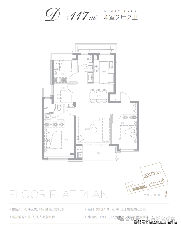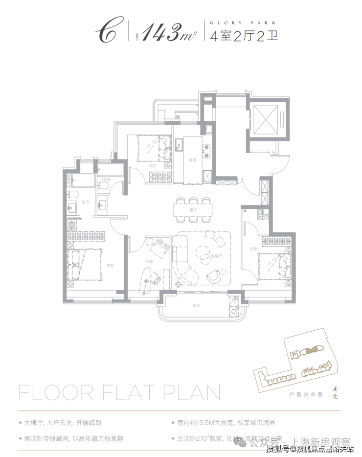 价格透明:105㎡三房约1000万起,143㎡四房约1500万起。