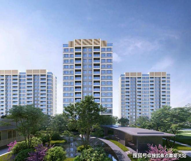 项目建筑为现代典雅风格,外立面采用多彩真石漆+香槟金色铝合金线条,顶部的塔冠设计是标志性特点。