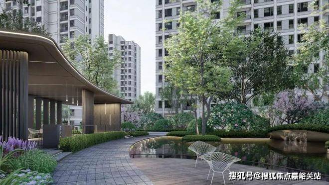 如果您是步行归家:那穿过售楼处以及5号楼,由会客廊架与水景、滨水环路组合成核心景观映入眼帘。
