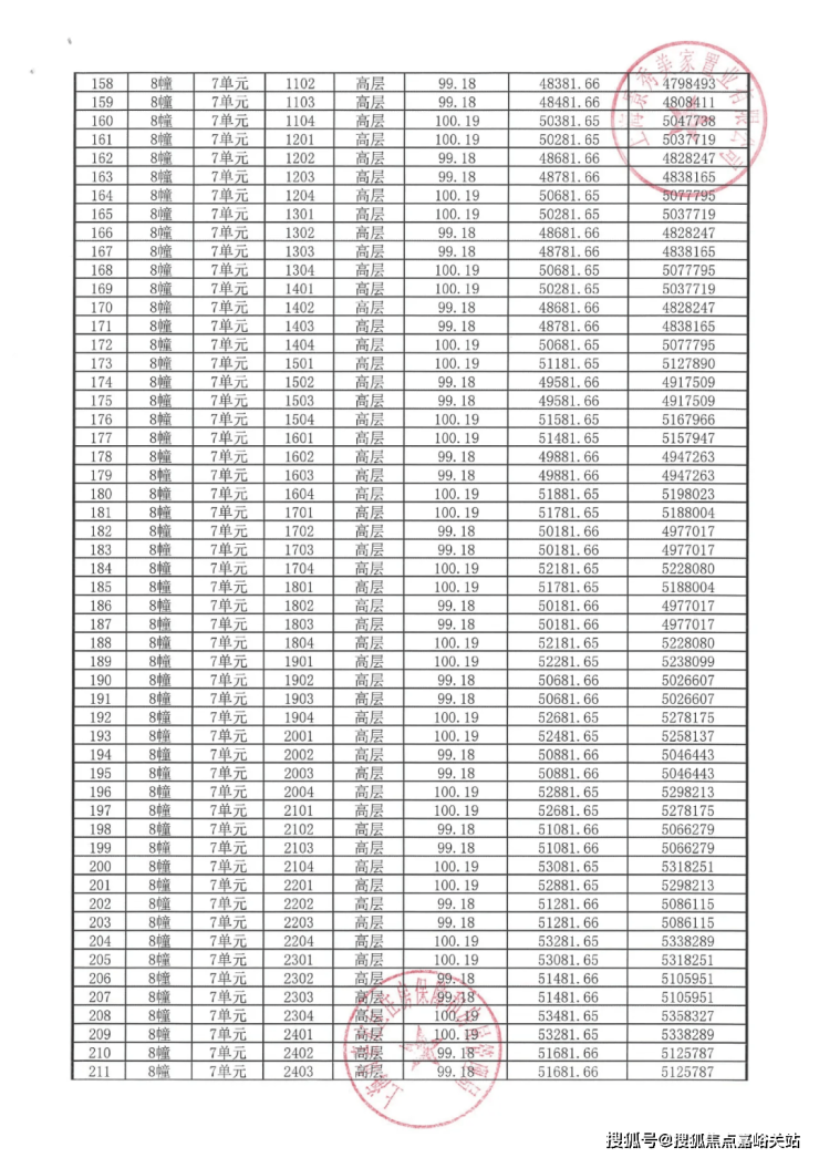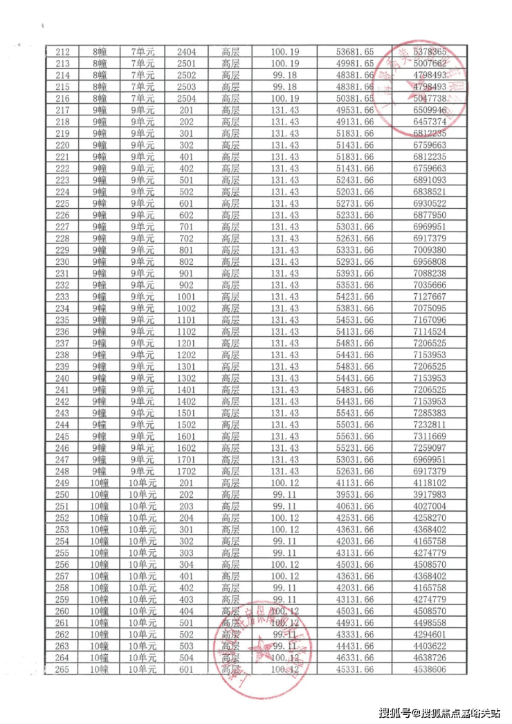 完整一房一价表如下: