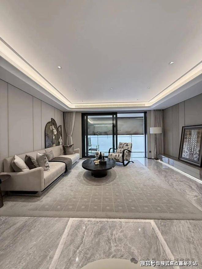 海上清和玺售楼处电话:400-8894-986电视背景墙采用卡慕白的石材+皮革造型,弧形吊顶,相当讲究,连空调出风口的形状都打造为海上·清和玺logo山茶花的形状~~三大件为大金海上清和玺售楼处电话:400-8894-986(或同等档次)中央空调和地暖,新风系统为百朗(或同等档次),南向阔景阳台,采光视野一级棒!