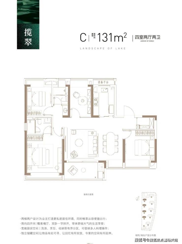 建面约131㎡4房2厅2卫,两梯两户设计,给足了业主归家仪式感和尊崇感,同时拥有一个尺度阔绰的入户门厅作为自己家的延伸!