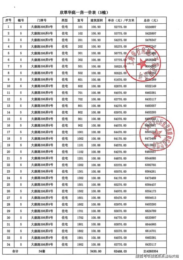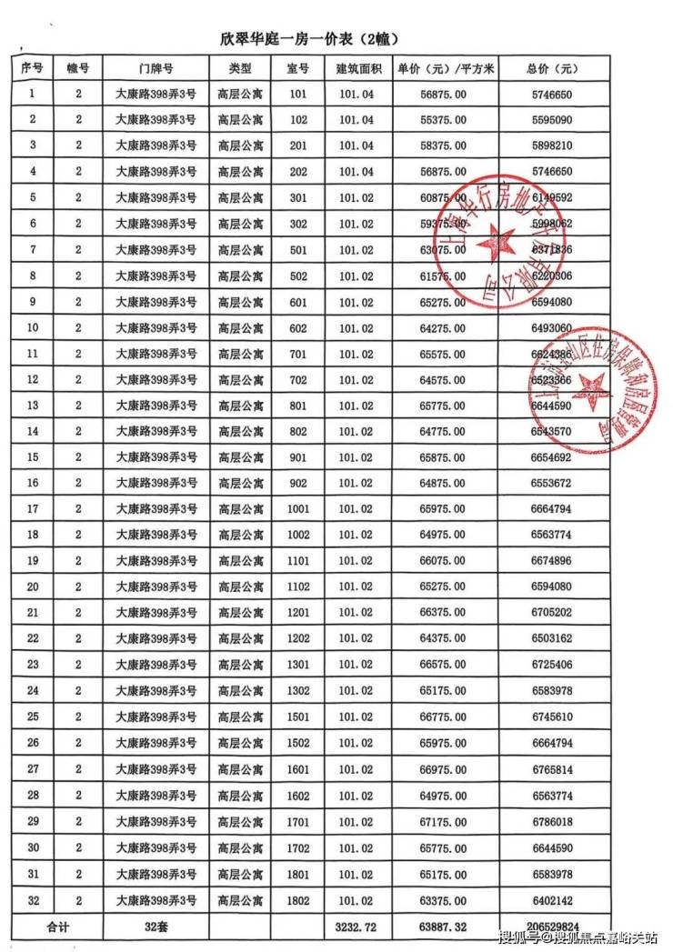 大华公园柏翠项目一房一价表▼